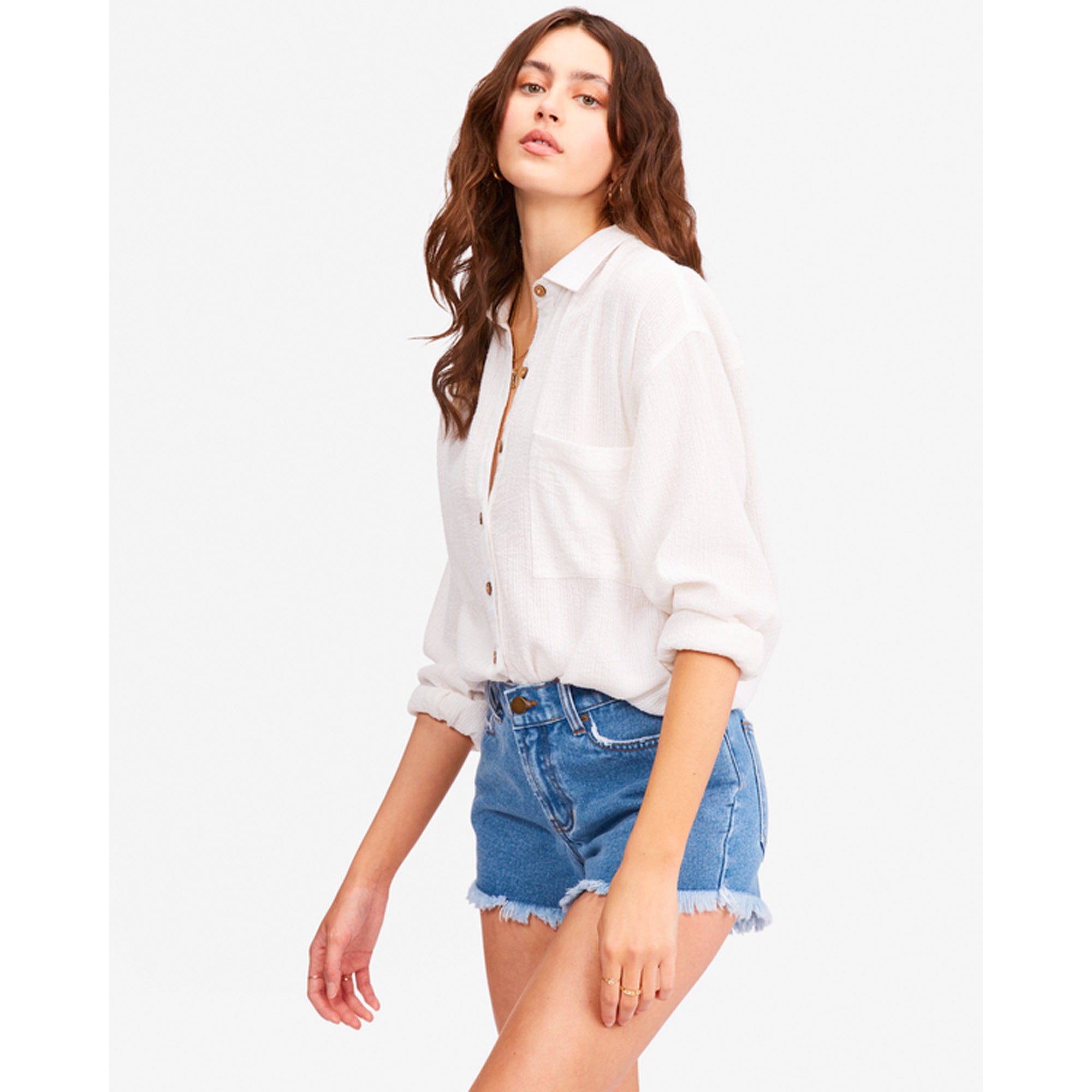 Home Women's Clothing Billabong Drift Away Women’s Frayed Denim Shorts – Costa Blue