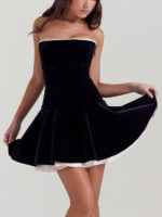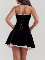 Elevate your wardrobe with the Black Velvet Strapless Dress and embrace timeless beauty.