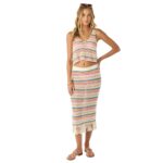 So cute knit cover-up tank top that features a crochet cotton design, v-neckline and skimmer length fit.